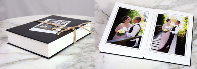 Passepartout-Mappe mit festem Kartondeckel vorne und hinten in schwarz sowie Schmuckband